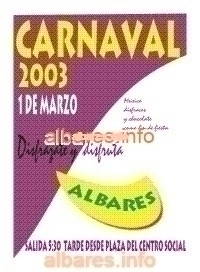 Carnaval 2003 Autor de la entrada:Editor Publicación de la entrada:25/08/2015 Categoría de la entrada:Asociación de Mujeres San Antonio / Ayuntamiento / Carnaval / Fiestas Última modificación de la entrada:19/02/2025 Tiempo de lectura:1 minuto de lectura http://www.albares.info/wp-content/albares/Carnaval/2003/carnaval2003.mp4 Carnaval 2003 « ‹ de 3 › » Entierro de la sardina Carnaval 2003. Entierro de la sardina Etiquetas: Asociación de Mujeres San Antonio, Carnaval Leer más artículos Entrada anteriorCarnaval 2002 Siguiente entradaCarnaval 2004 También podría gustarte Vuelve a emocionarte con el Concierto de las Candelas 2025: «La lírica en el cine» 05/08/2025 ¡Descubre la Magia de la Música en la Escuela de Música de la Asociación Musical Villa de Albares! 11/07/2024 Flamenco a cargo de Isaac Cruz 02/08/2023