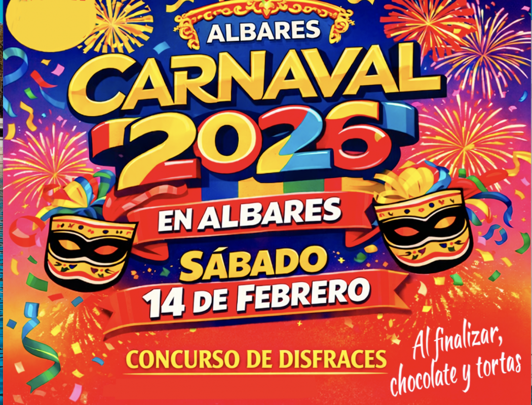 El Carnaval 2026 ya tiene fecha y Albares se vestirá de fiesta para vivir un fin de semana lleno de color, música y diversión. La cita será el sábado 14 de febrero a las 17:30 horas, con una gran tarde carnavalesca en la que vecinos y visitantes podrán sacar sus mejores disfraces y participar en el esperado Concurso de Disfraces. Y para cerrar la jornada como se merece, no faltarán el chocolate caliente y las tortas, poniendo el broche dulce a una tarde inolvidable.
